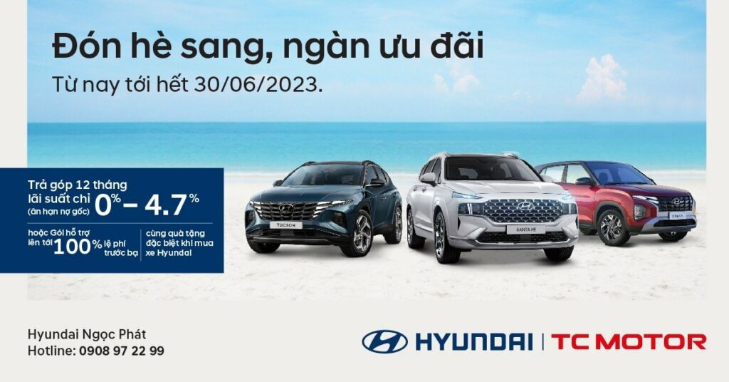 Từ nay cho đến hết 30/06/2023, Hyundai Ngọc Phát chính thức triển khai chương trình ưu đãi đặc biệt “Đón hè sang – Ngàn ưu đãi” áp dụng tại Đồng Nai